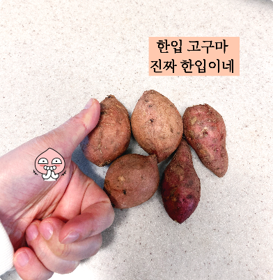 정말 작은 고구마더라구요. ㅎㅎ보자마자 정말 한입고구마네 구매는 토스공동구매에서 했어요 가격이 참 착하긴 하더라구요 ~