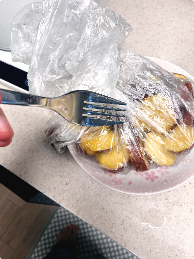 6. 봉지 살짝 열어 보고 덜 익었다면 1분 추가 (그때그때 고구마 상태를 보고 더 돌려도 됩니다.저는 푹 익는걸 좋아해서 더 돌렸어요)